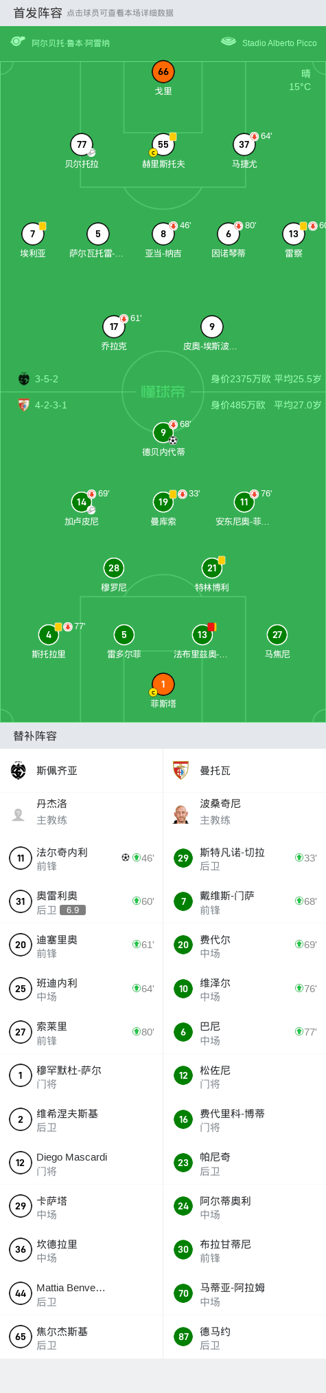 第18分钟,曼托瓦球员加卢皮尼助攻德贝内代蒂打入一球。