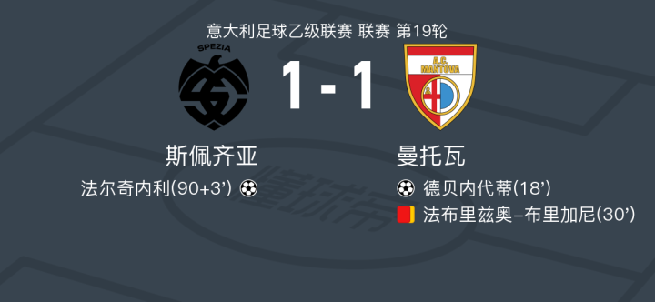 斯佩齐亚1-1曼托瓦,德贝内代蒂先拔头筹,法尔奇内利扳平