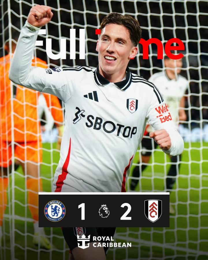 在英超第18轮的比赛中,富勒姆依靠哈里-威尔逊和罗德里戈-穆尼斯第82分钟和第95分钟的进球客场2-1逆转切尔西,取得近四轮首胜。