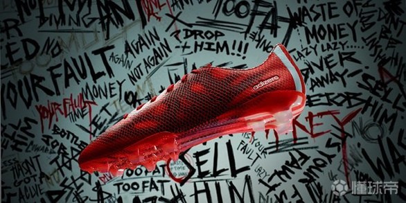 确实第4代F50 Adizero到现在位置也被国内外众多玩家捧为“神作”,一款极致轻盈的全能型战靴,你敢说有人会不喜欢?从某种程度上来说,她更可以说是Adidas足球鞋产业在低谷中的一束光明。如果你认为HybridTouch和F50结合的故事到这里就结束了,那就大错特错了!事实上还存在着另一双被国人奉为“神器”的F50 Adizero足球鞋,也就是第5代即最后一代。由于当时F50最大牌的代言人是威尔士国家队的当家球星加雷斯贝尔,而更是由于这整只鞋全红的摩擦鳞片图层设计,在中国她被人亲切的称为“红龙”!