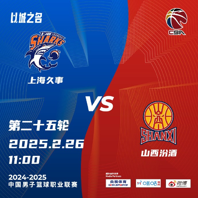 因场馆档期占用原因,经上海久事篮球俱乐部与山西汾酒篮球俱乐部协商,并向中篮联(北京)体育有限公司(简称“CBA公司”)申请,将2024-2025赛季CBA联赛常规赛第二十五轮(场序247)上海久事对阵山西汾酒的比赛由原2025年1月1日19:35变更至2025年2月26日11:00进行。经CBA公司研究确认,同意上述变更申请。