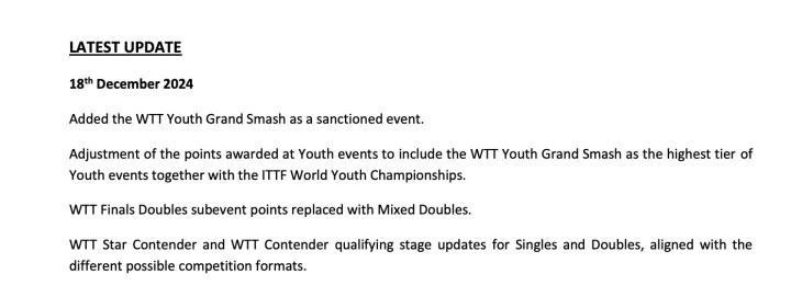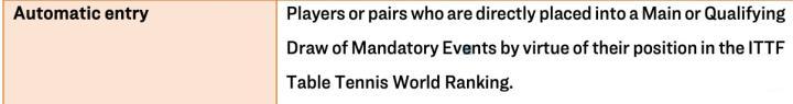 3.对于在运动员退役日期之后由WTT和ITTF管理、报名且授予世界排名积分的赛事,运动员将自动退出;