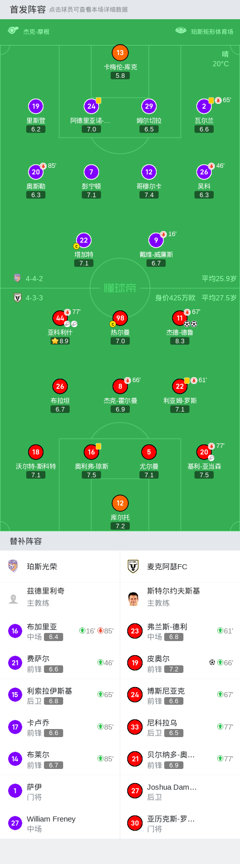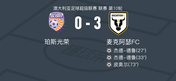 麦克阿瑟FC3-0大胜珀斯光荣,杰德-德鲁梅开二度,皮奥尔破门