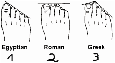 必须得从我们的脚出发来选鞋。一般来说,选鞋的第一步,要考虑的是自己的脚型,脚型一般分为3种,埃及脚,罗马脚和希腊脚