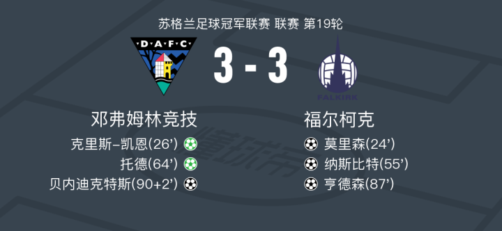 邓弗姆林竞技3-3福尔柯克,莫里森首开记录,贝内迪克特斯救主