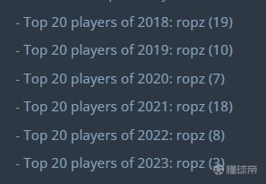 唯有责任,ropz获评HLTV年度TOP18,连续第7年入选TOP20