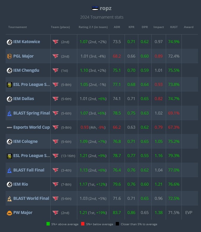 ropz全年赛事数据