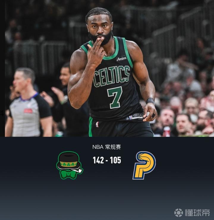 凯尔特人142-105大胜步行者,布朗狂砍44+5+3,哈利伯顿19分