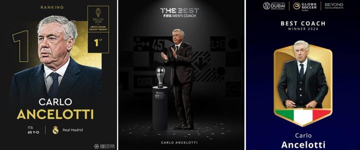 强势揽下三项个人荣誉,这是安切洛蒂的丰收年。