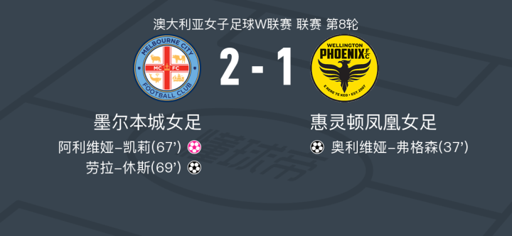 墨尔本城女足2-1逆转惠灵顿凤凰女足,劳拉-休斯建功