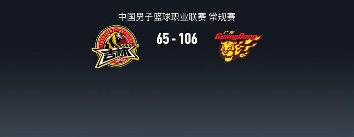 北京时间12月28日CBA常规赛,半场吉林39-63广东,最终吉林65-106广东。