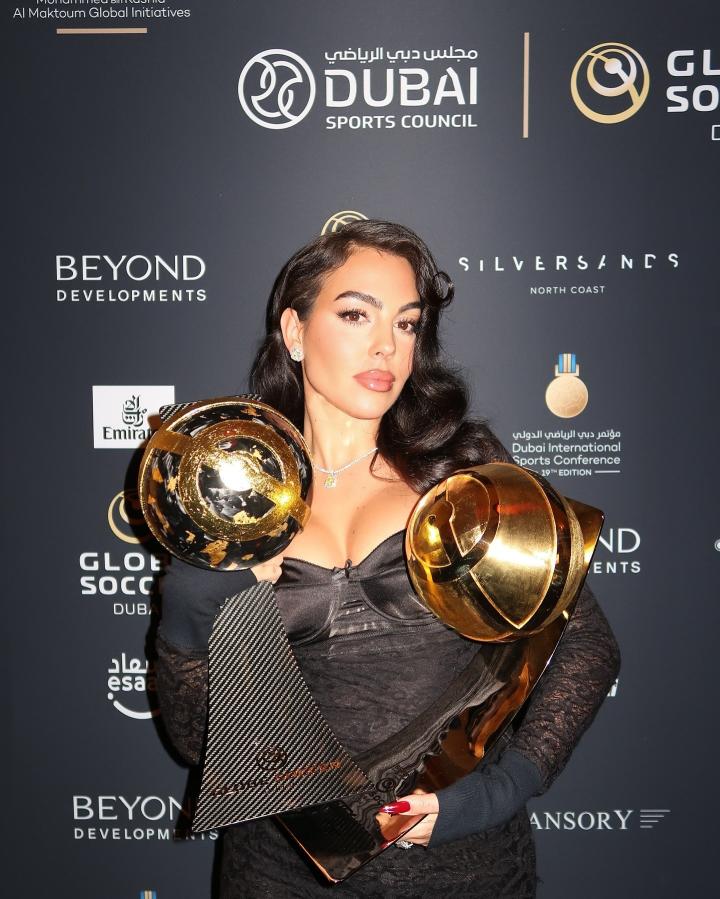 在2024年环球足球奖颁奖典礼上,C罗在女友乔治娜和大儿子迷你罗的见证下获得年度最佳中东球员奖和历史最佳射手奖。