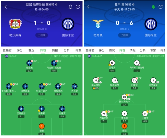 随着欧冠赛程的深入,国际米兰在进攻端的表现收敛了很多。客场不敌勒沃库森之前,蓝黑军团在双线14场比赛中拿到了11胜3平的战绩,火爆的状态却没有换来相应的曝光率,原因之一就是他们在很多比赛中踢得非常克制,40天内连续收获5场1-0就是明证。就在人们担心蓝黑军团向老派的意大利风格靠拢时,小因扎吉对阵老东家拉齐奥时揭开了这支球队的面纱。
