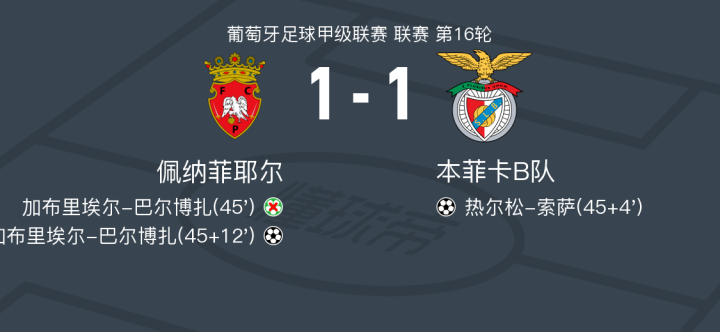 佩纳菲耶尔1-1本菲卡B队,热尔松-索萨打破僵局,加布里埃尔-巴尔博扎救主