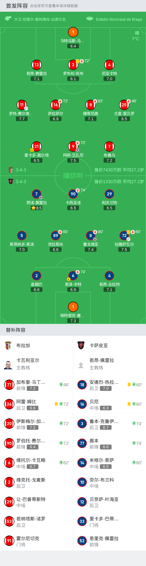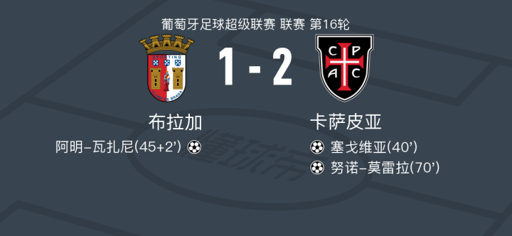 第70分钟,卡萨皮亚球员安德烈-热拉尔德斯助攻努诺-莫雷拉打入一球。