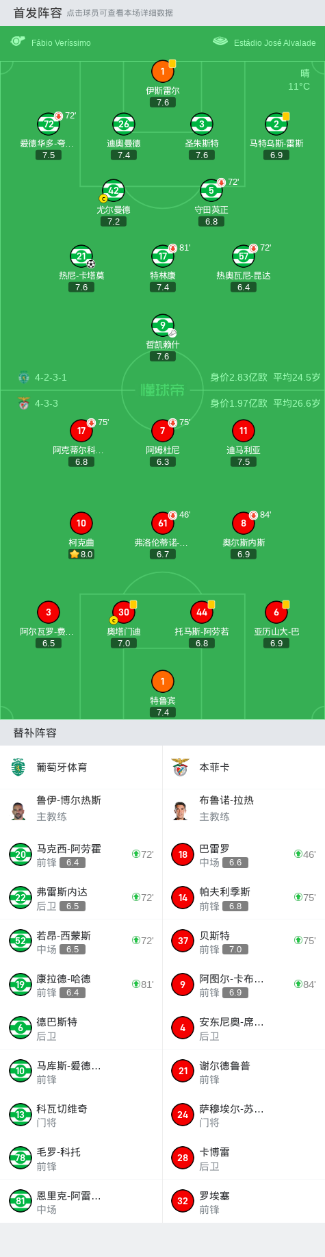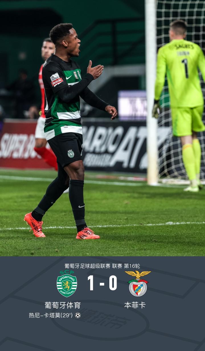 葡萄牙体育1-0本菲卡,卡塔莫制胜,哲凯赖什献助攻
