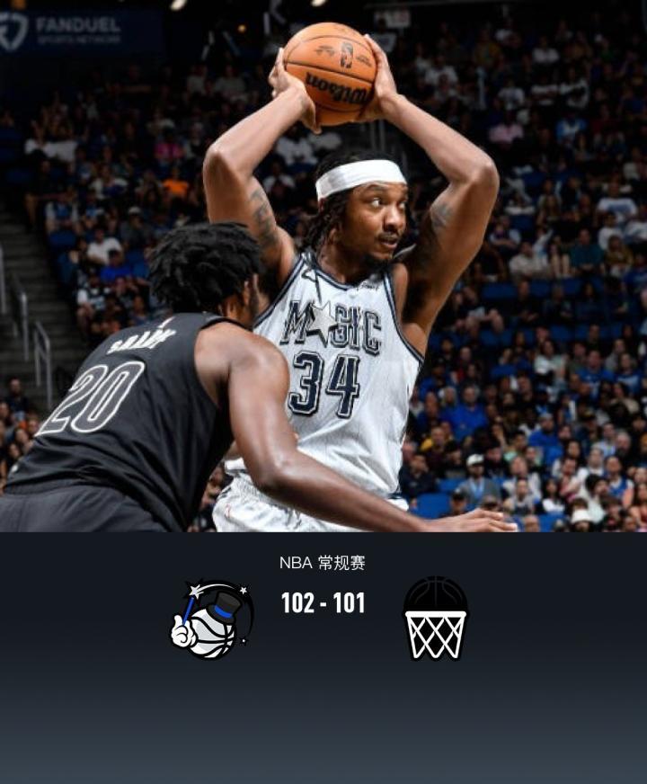 魔术102-101逆转险胜篮网,科尔-安东尼抛投准绝杀,托马斯25分