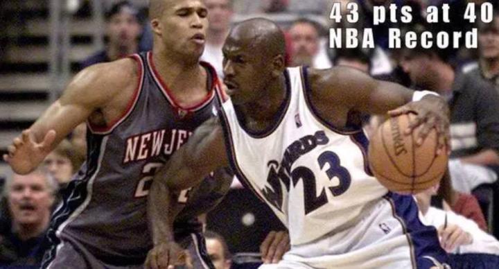 NBA历史上只有迈克尔-乔丹在40岁后还能拿到40+。2003年2月21日,乔丹40岁生日后的第四天,在华盛顿89-86战胜新泽西网队的比赛中,乔丹砍下43分。