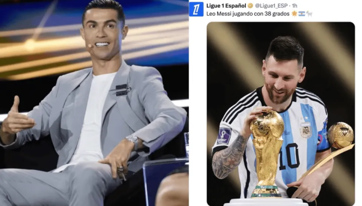 法甲西语官方则晒出了梅西在卡塔尔捧杯的照片,以此回击C罗。