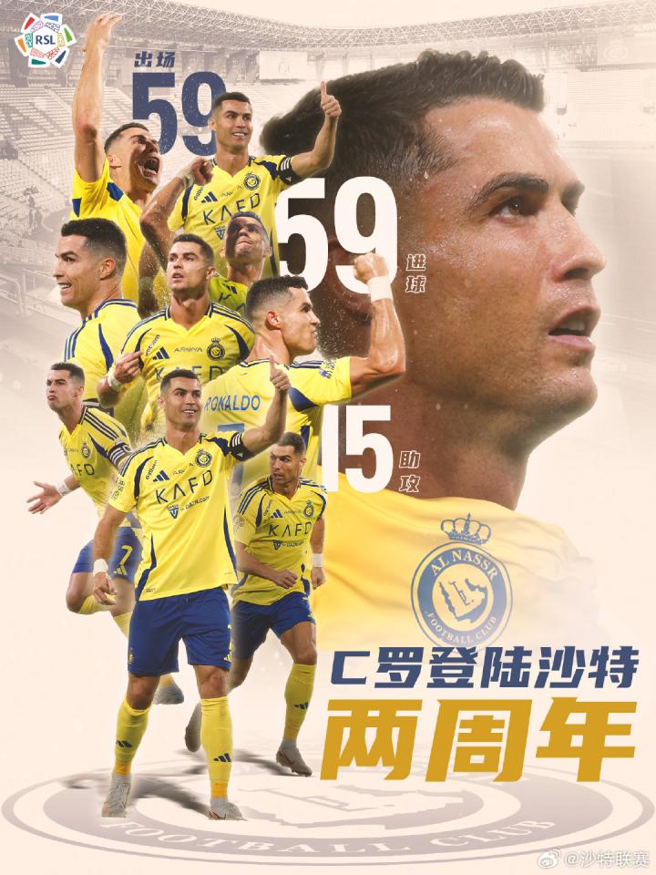 C罗加盟两周年,沙特联赛官方发文纪念新闻罗伯特 @懂球帝2024-12-31 09:09沙特联赛官方发布微博:📅2年前的今天,C罗登陆沙特联赛,加盟利雅得胜利🐐 2年时间59场比赛,C罗贡献59粒进球和15次助攻,并在上赛季以破纪录的35球拿下金靴🏆 新的一年即将到来,你对他都有哪些期待呢?本文由新闻罗伯特自动编译,欢迎大家在评论区提出建议和意见,帮助我们不断优化。展开更多
