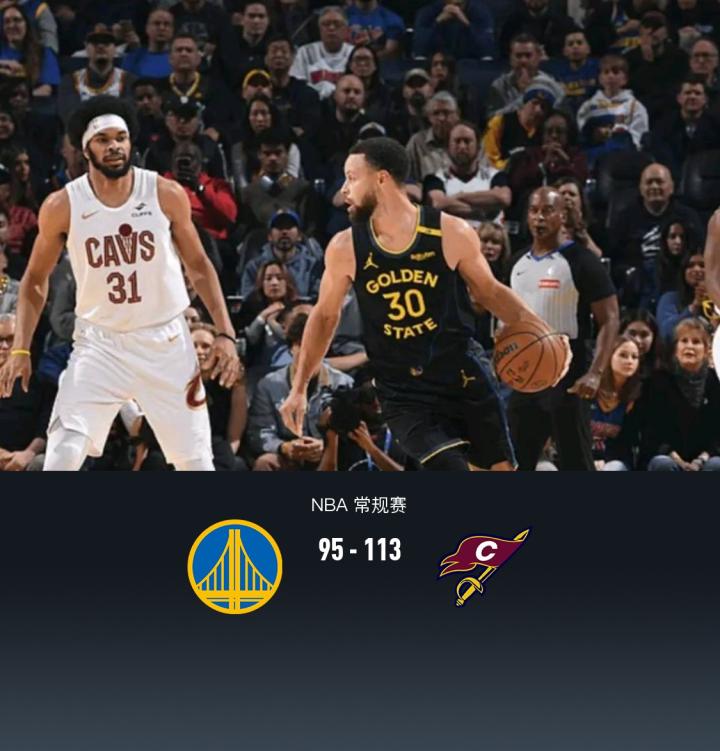 第四节,上来勇士施罗德里突外投连续得分,但骑士总能回应三分不断,随后穆迪站出来得分,但骑士还能回应继续保持20分上下领先,还剩4分多钟双方相继换下主力,最终勇士95-113不敌骑士。
