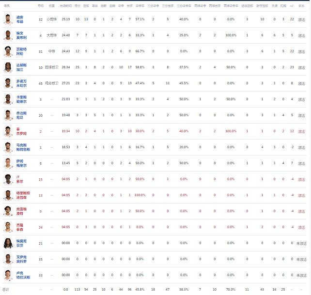 球员全场数据