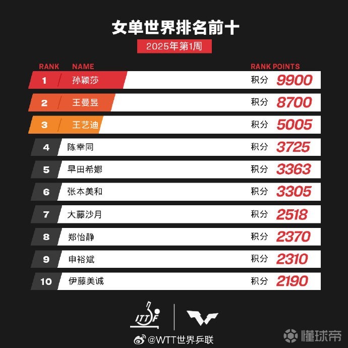 国际乒联更新世界排名:马龙、樊振东、陈梦正式退出