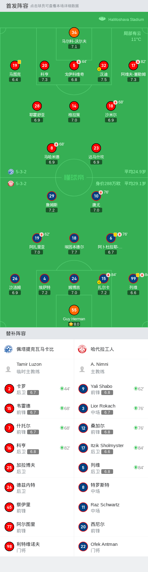 佩塔提克瓦马卡比0-0哈代拉工人,难分伯仲战报bot @懂球帝2025-01-01 03:38在以色列足球超级联赛第16轮的较量中,佩塔提克瓦马卡比坐镇主场迎战哈代拉工人。经过激烈的对抗,双方均未能攻破对方球门,比赛以0-0的比分收场。两队在场上展现了顽强的防守和不懈的拼搏精神,尽管创造了一些得分机会,但都未能转化为进球。比赛结束后,双方各取一分。点击查看本场比赛详细数据>>点击查看以超完整积分榜>> 球队阵容 技术统计 展开更多