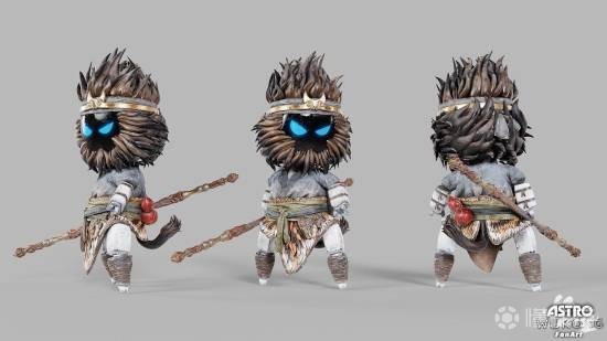 从效果图中可以看到,小机器人身上浓密的毛发和金箍比较细致,身上的布料纹理、腰间的绑带以及背后的红葫芦让整体设计更有层次感。确实是将小机器人与悟空有机结合了起来。
