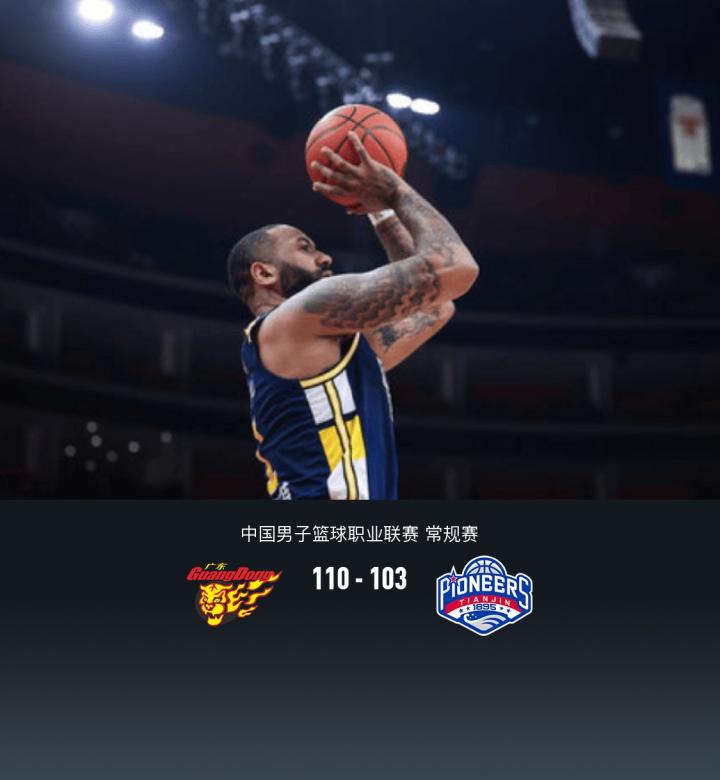 第四节广东杜润旺拿下6分,天津林庭谦拿下11分,最终广东110-103战胜天津