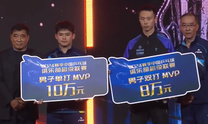 赛后颁奖仪式上,王楚钦、梁靖崑领衔的山东魏桥队获得100万元的冠军奖金,林诗栋领衔的黄石基地队获得70万元的亚军奖金,林高远领衔的汕头明润队获得30万元的季军奖金。