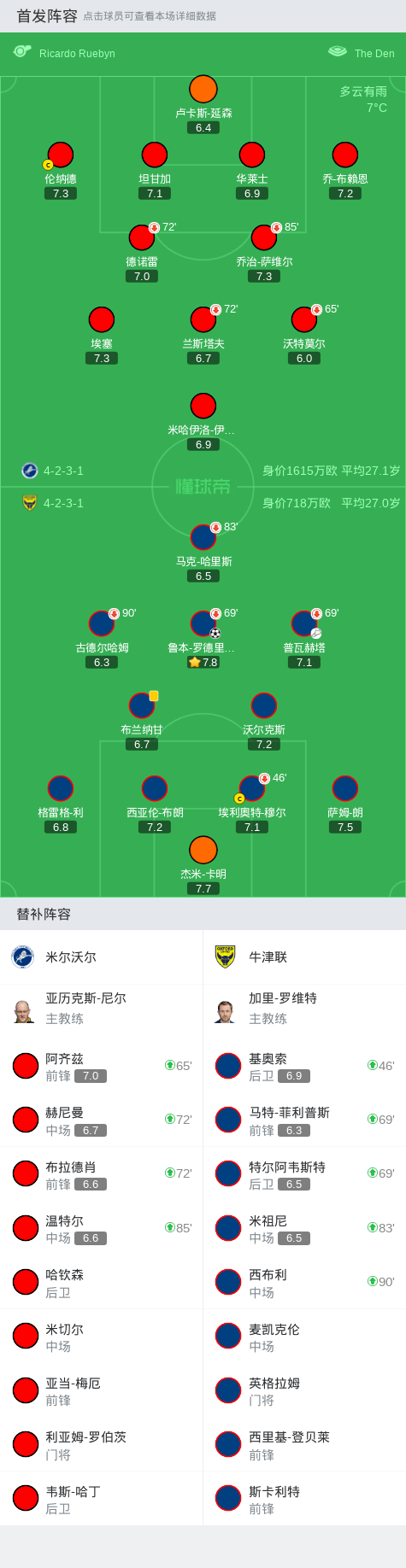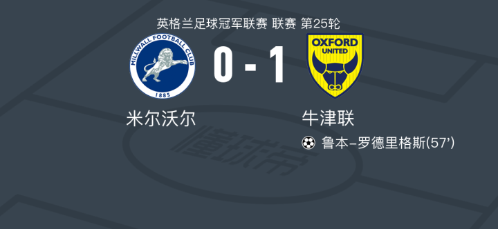 牛津联1-0米尔沃尔,鲁本-罗德里格斯打进全场唯一进球