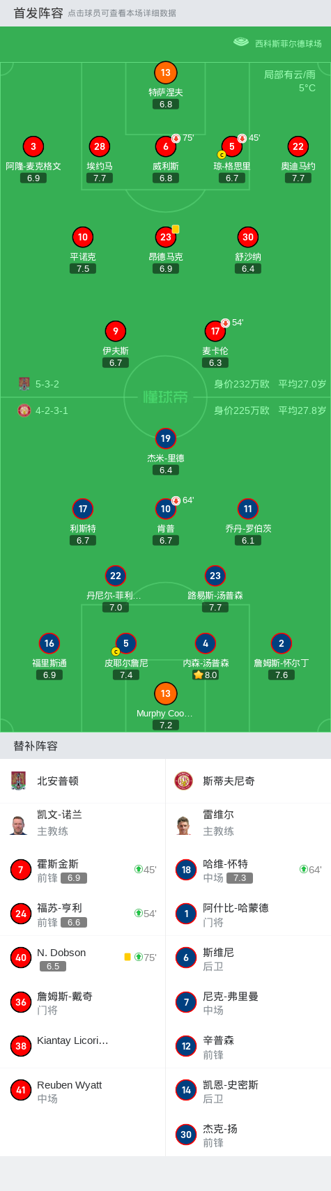北安普顿0-0斯蒂夫尼奇,两队破门乏术战报bot @懂球帝2025-01-02 01:00在英格兰足球甲级联赛第24轮的较量中,北安普顿坐镇主场迎战斯蒂夫尼奇。经过激烈的对抗,双方均未能攻破对方球门,比赛以0-0的比分结束。两队在场上展现了顽强的防守和不懈的拼搏精神,尽管创造了一些得分机会,但都未能转化为进球。最终,北安普顿与斯蒂夫尼奇各取一分,握手言和。点击查看本场比赛详细数据>>点击查看英甲完整积分榜>> 球队阵容 技术统计 展开更多