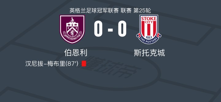 在英格兰足球冠军联赛第25轮的较量中,伯恩利坐镇主场迎战斯托克城。比赛中,双方球队都展现了顽强的防守和不懈的拼搏精神,最终以0-0的比分握手言和。比赛中,伯恩利的汉尼拔-梅布里因犯规被罚下场,这一事件对比赛的走势产生了一定影响。尽管如此,双方都未能在对方球门前取得突破,比赛以平局告终。