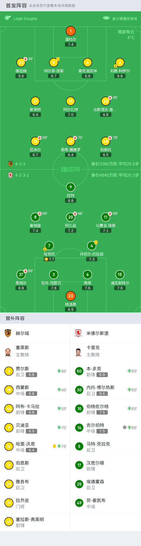 米德尔斯堡1-0赫尔城,吉尔伯特助球队取胜