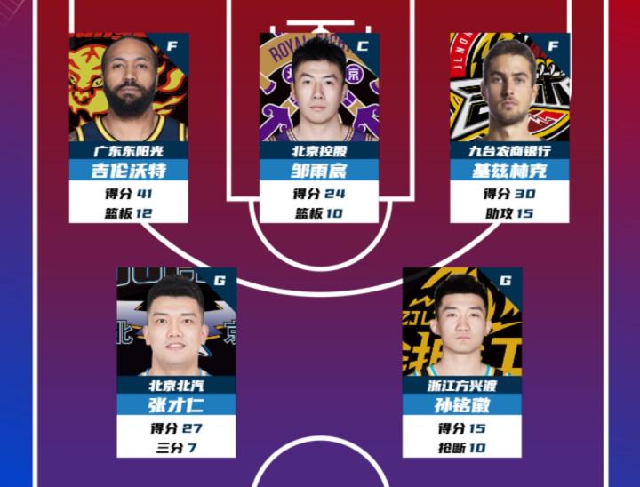 CBA第25轮最佳阵:张才仁领衔,邹雨宸&孙铭徽&吉伦沃特入选