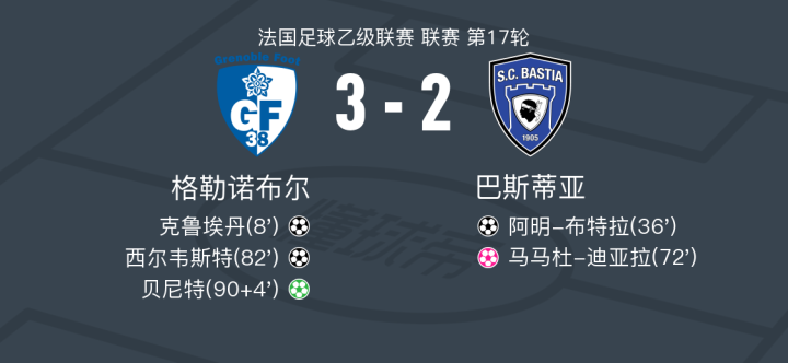格勒诺布尔3-2巴斯蒂亚,贝尼特点射,西尔韦斯特建功