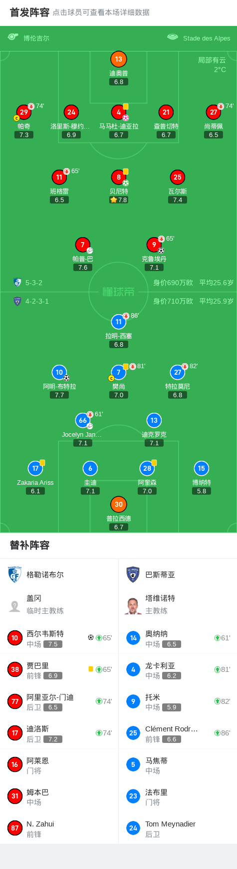 第8分钟,格勒诺布尔球员帕普-巴助攻克鲁埃丹打入一球。