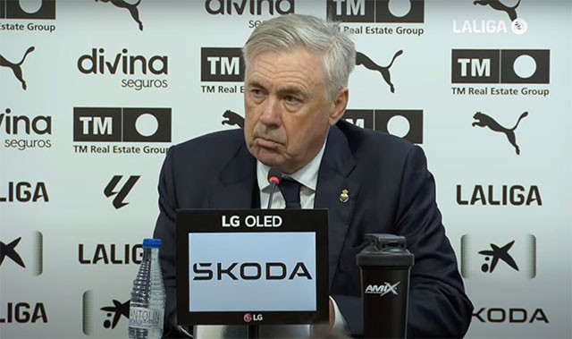 带领球队在客场2-1逆转瓦伦西亚登上榜首后,皇马主帅安切洛蒂出席了新闻发布会,他点评了球队此役的表现。