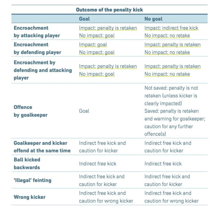 根据IFAB发布的最新足球竞赛规则,点球中守门员出现犯规,如果球未进球门或从横梁或球门柱反弹,只有守门员的犯规明显影响到踢球者时才可以重踢。