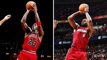 詹姆斯:乔丹喜欢左肩后仰跳投而我相反;我们通过练习让投篮无法防守