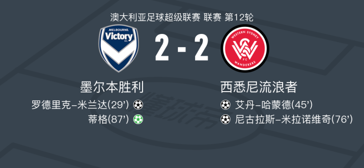墨尔本胜利2-2西悉尼流浪者,罗德里克-米兰达破僵,蒂格救主