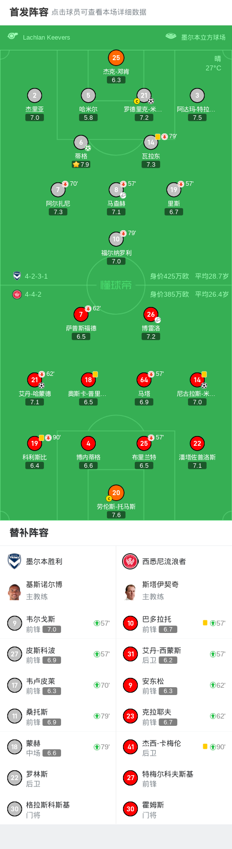 第29分钟,墨尔本胜利球员马查赫助攻罗德里克-米兰达打入一球。