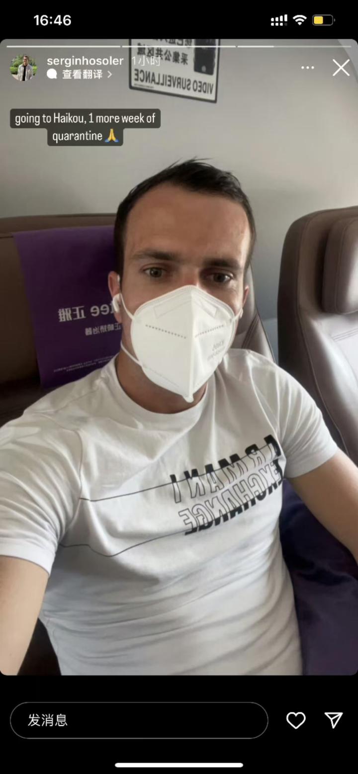 6月1日傍晚,塞尔吉尼奥结束了在指定酒店的医学观察,俱乐部给他安排了次日从上海前往海口赛区的机票,但由于当时上海的公共卫生情况刚刚趋于平稳,俱乐部的工作人员依旧无法前往上海解决6月1日晚塞尔吉尼奥的住宿以及次日前往机场的行程问题。