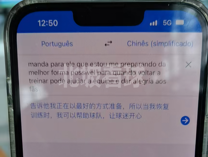 塞尔吉尼奥通过翻译软件向球迷表达了感谢