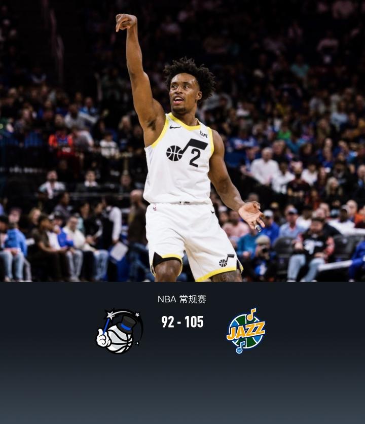 第四节魔术杰特-霍华德拿下10分,爵士森萨博拿下13分,最终魔术92-105不敌爵士