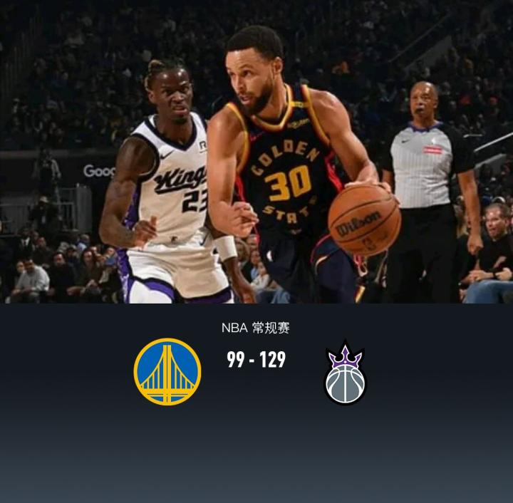 第四节,勇士提前缴械投降换上全替补,国王继续主力在场始终保持30分上下领先,后半节国王也换下主力,彻底进入练兵时间,最终国王129-99大胜勇士。