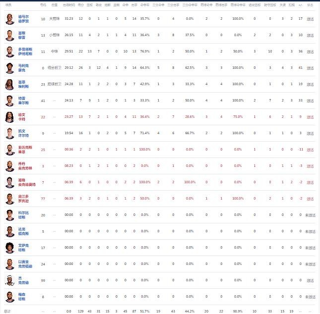 球员全场数据