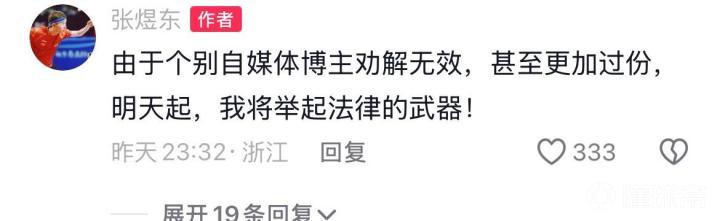 前国乒队员张煜东辟谣网传桃色事件男主人公是自己,将采取法律武器