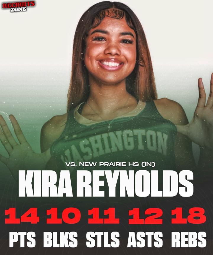 在当地时间上周六进行的一场美国高中女子篮球联赛中,已经承诺加入普渡大学的南本德华盛顿队的球星Kira Reynolds在单场比赛中砍下惊人的五双数据,帮助球队以85-12击败了新草原队。